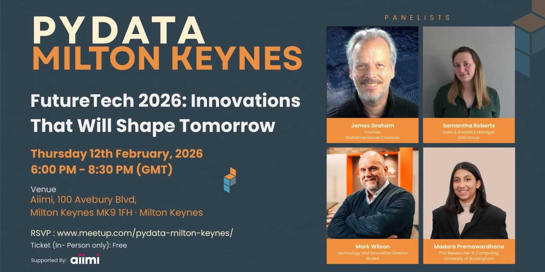 FutureTech 2026 is a forward-looking PyData Milton Keynes in-person event exploring the innovations, ideas, and responsibilities that will define the next era of technology. “The Next Frontier: Beyond Superintelligence into Conscious Evolution” This keynote challenges fear-driven narratives around superintelligence and instead explores how humanity can consciously guide technological evolution toward transparency, responsibility, and collective growth. Panel … FutureTech 2026: Innovations That Will Shape Tomorrow