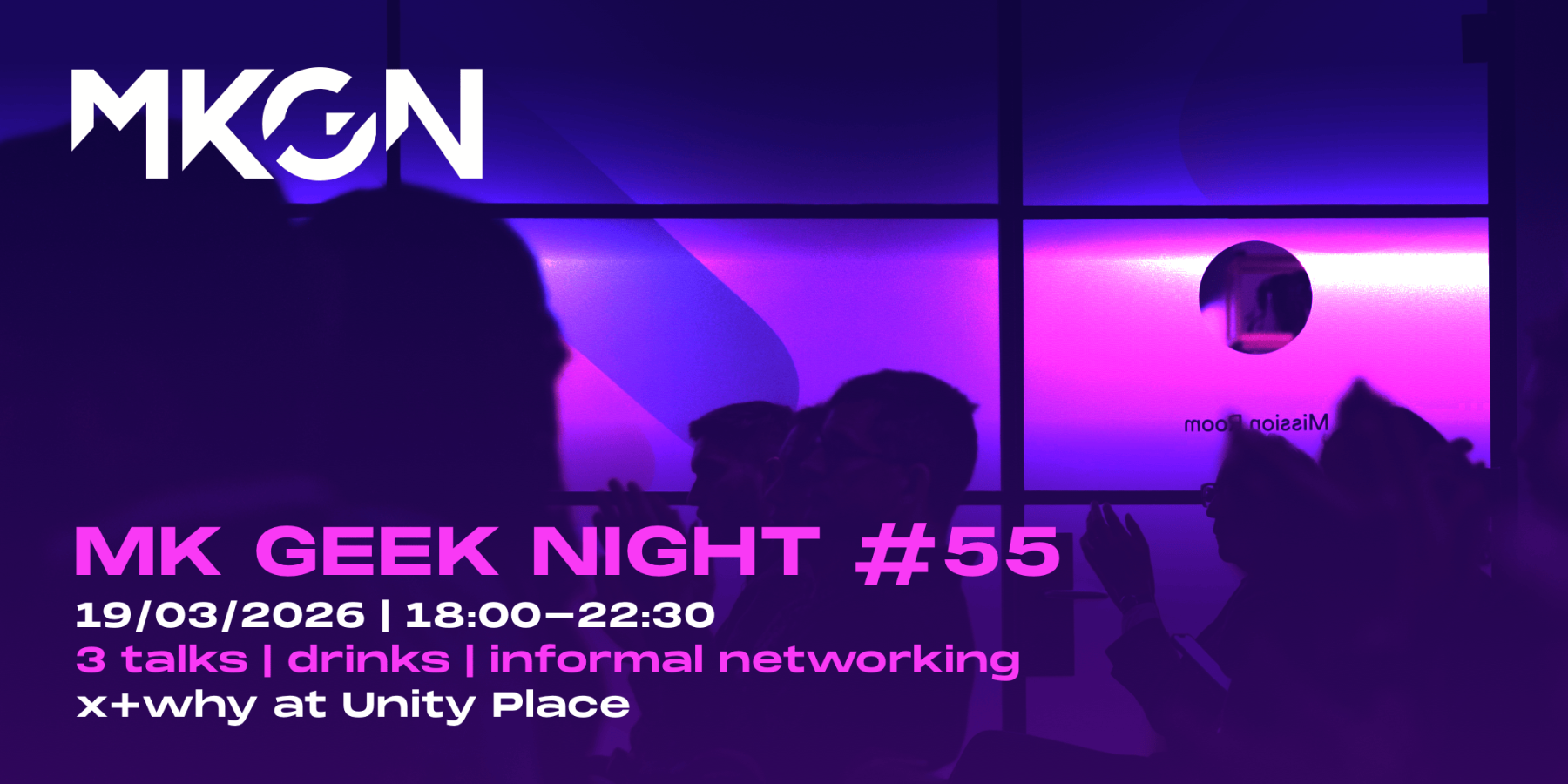 Our first MKGN of the year is on Thursday 19th March, at x+why in Unity Place. Tickets are now live – go get ’em! 📆 When: Thursday 19th March 2026 📍 Where: x+why, Unity Place, 200 Grafton Gate, Milton Keynes, MK9 1UP. ⏰ Time: Doors open at 18:00 with talks starting at 19:15. 🍕 Pizza: With thanks to Unity Place … MK Geek Night 55